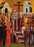 Το 326 μ.Χ. η Αγία Ελένη πήγε στην Ιερουσαλήμ για να προσκυνήσει τους Αγίους Τόπους και να ευχαριστήσει το Θεό για τους θριάμβους του γιου της Μεγάλου Κωνσταντίνου. Ο Θείος ζήλος όμως, έκανε την Άγια Ελένη να αρχίσει έρευνες για την ανεύρεση του Τιμίου Σταυρού.